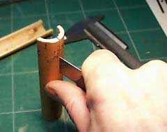 Select a tube of cane as straight as possible. Tube diameter ± 24 mm, cut it to a length 100 mm using a fine tooth saw. If you find it hard doing this with the chisel you can bring it down by using the sandpaper. The thickness is ± 0,25 mm