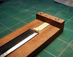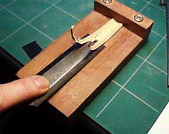 Place the slip on the shooting board and remove the pith with a chisel. Starting 1/2 way down, flip the slip over and repeat.