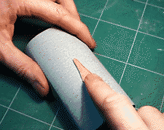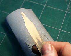 A sanding block with a 82 mm diameter is used to profile the inner side of the reed.
