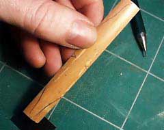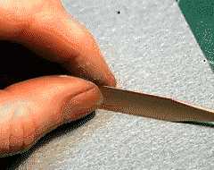 Wrap a fresh piece of sandpaper around the sanding block. Place the slip on the sanding block and start sanding the first half of the reed. Don't put to much pressure on the slip let the sandpaper do the work.