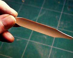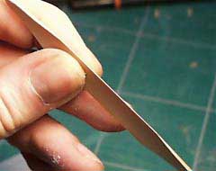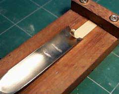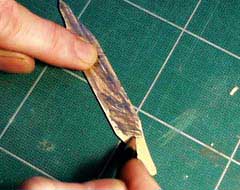 This picture shows the profile after the sanding is done. Notice the very thin edge on the side of the reed.