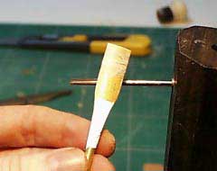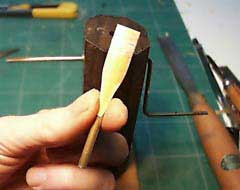 Place it on the winder. You don't really need a winder but if you make a lot of reeds it will make the process of tying the head to the staple a lot faster and you'll have much more control.